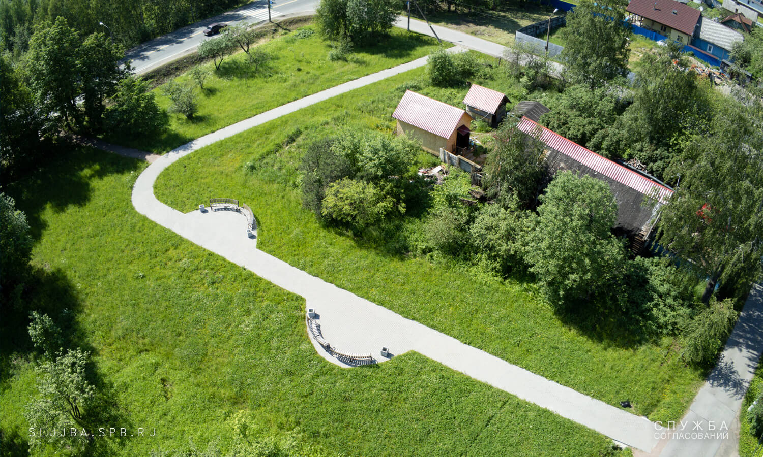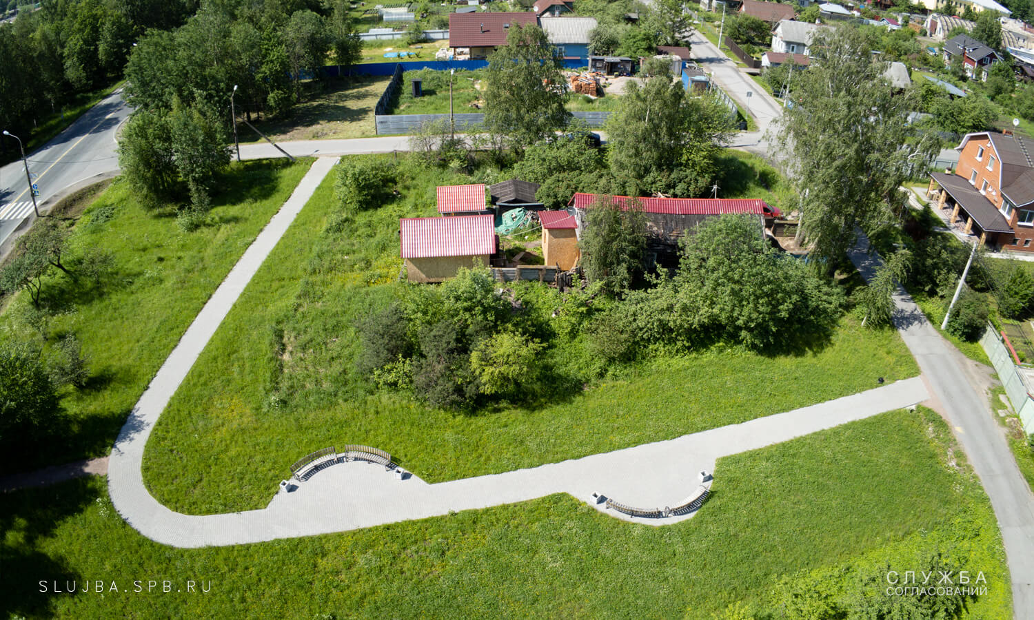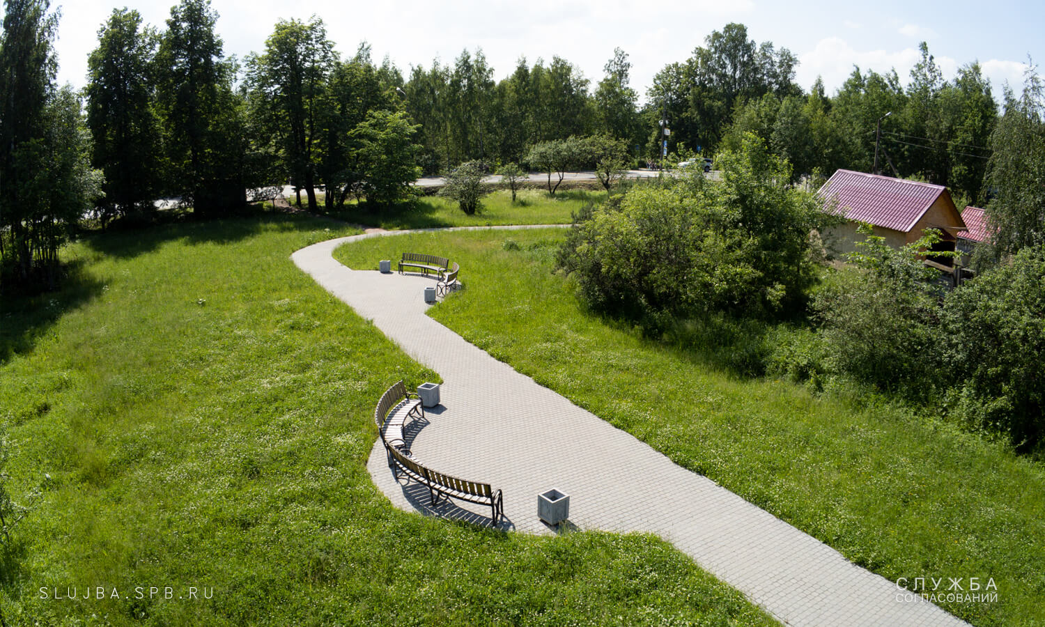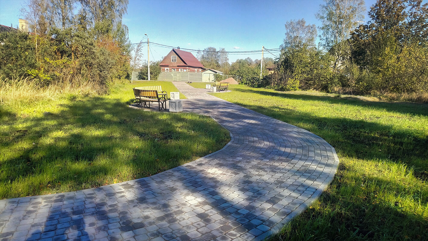 Задачей проекта было разработать и согласовать проект благоустройства территории, находящейся за остановкой общественного транспорта на углу Славянской дороги и Петрозаводского шоссе. Проектом необходимо было предусмотреть мощеную пешеходную дорожку и зоны отдыха на подходе к остановке общественного транспорта, а также предусмотреть выравнивание грунта и его засев газонной травой. Существующие дренажные канавы также подлежали очистке.