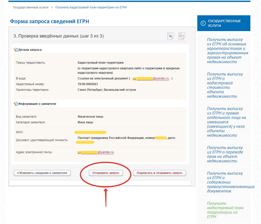 В данном окне проверяем все данные и нажимаем «Отправить запрос».